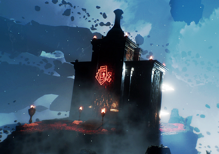 Text Description: The Flying Casino is located upon a floating island, accessible by riding one of the neon whales circling the perimeter. Upon the archipelago is a grand building with a boarded door, guarded by a companion bot wearing the tip of a paintbrush upon its head. Inside, more constructs staff numerous games of chance, from blackjack to roulette, to games from other worlds people might be familiar with. These staff wear similar headwear and some have taken to wearing masks with crude drawings. Players are provided with tokens and offered a chance of winning strange and useless prizes that provide no advantage in missions. One player might win a stuffed toy resembling a companion while another wins a swimsuit. Though most will likely lose their winnings. Because the house always wins.